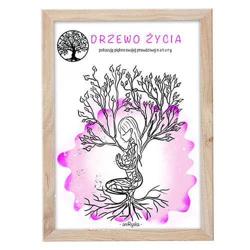 Grafika sprzedawana z ramą do wyboru. Ramka: biała, czarna, jasne drewno